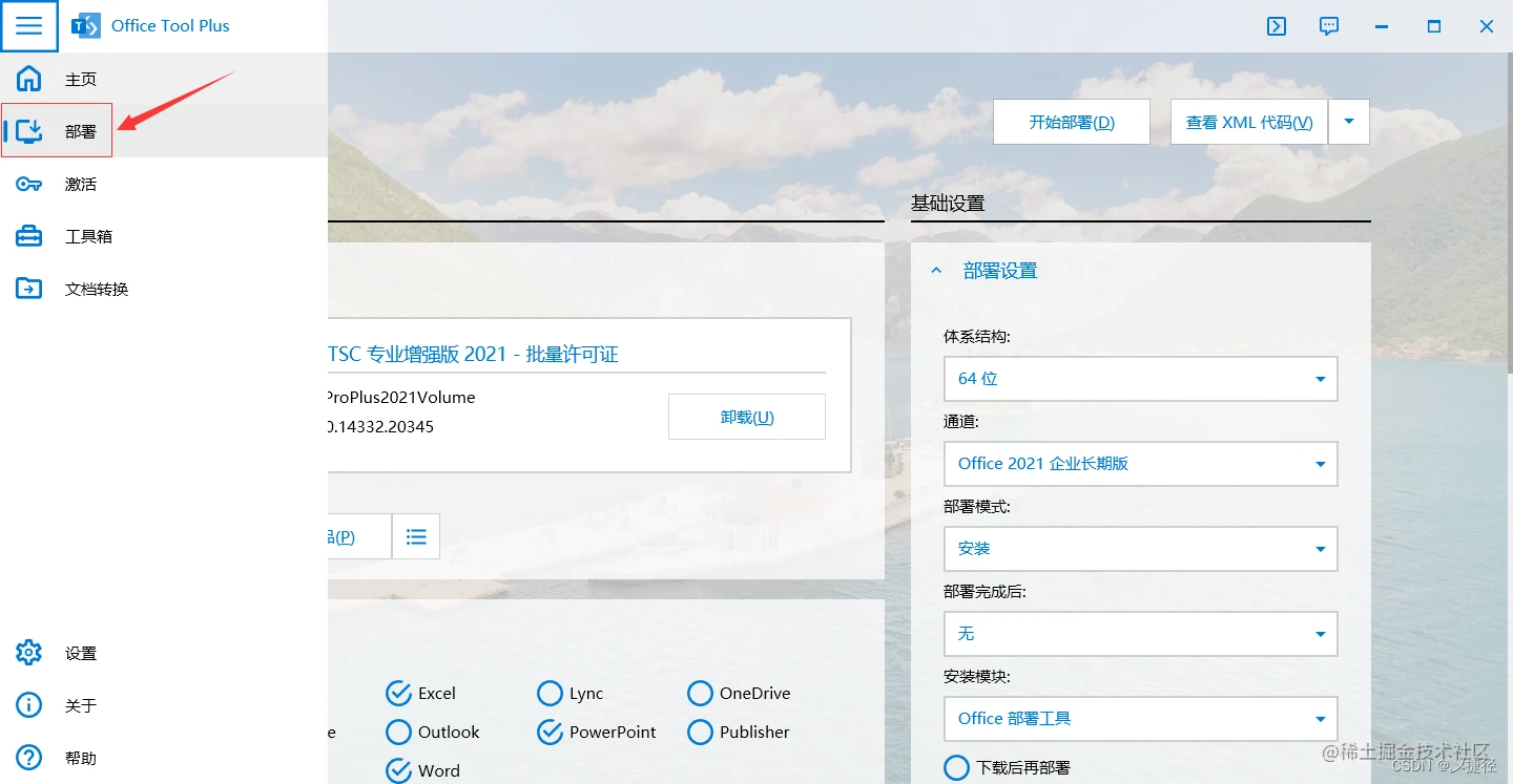 1. 解压office tool 压缩包,打开 Office Tool Plus,如果电脑上有office 的朋友,要提前卸载office,好用的卸载工具这里也提供一下,iobit 卸载软件卸载完之后点击部署,如果没有卸载干净也可以部署,那么你的电脑上可能会出现2个office,所以大家在安装的时候还是要注意一下